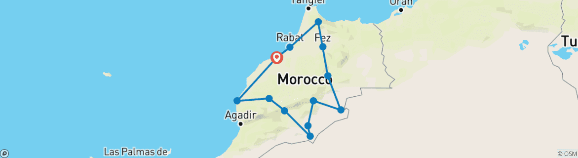 Private Grand Tour Morocco 15-days Atlantic to Desert and Atlas Map: